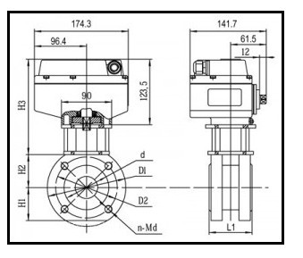 Q971F電動對夾球閥的外形及安裝尺寸: