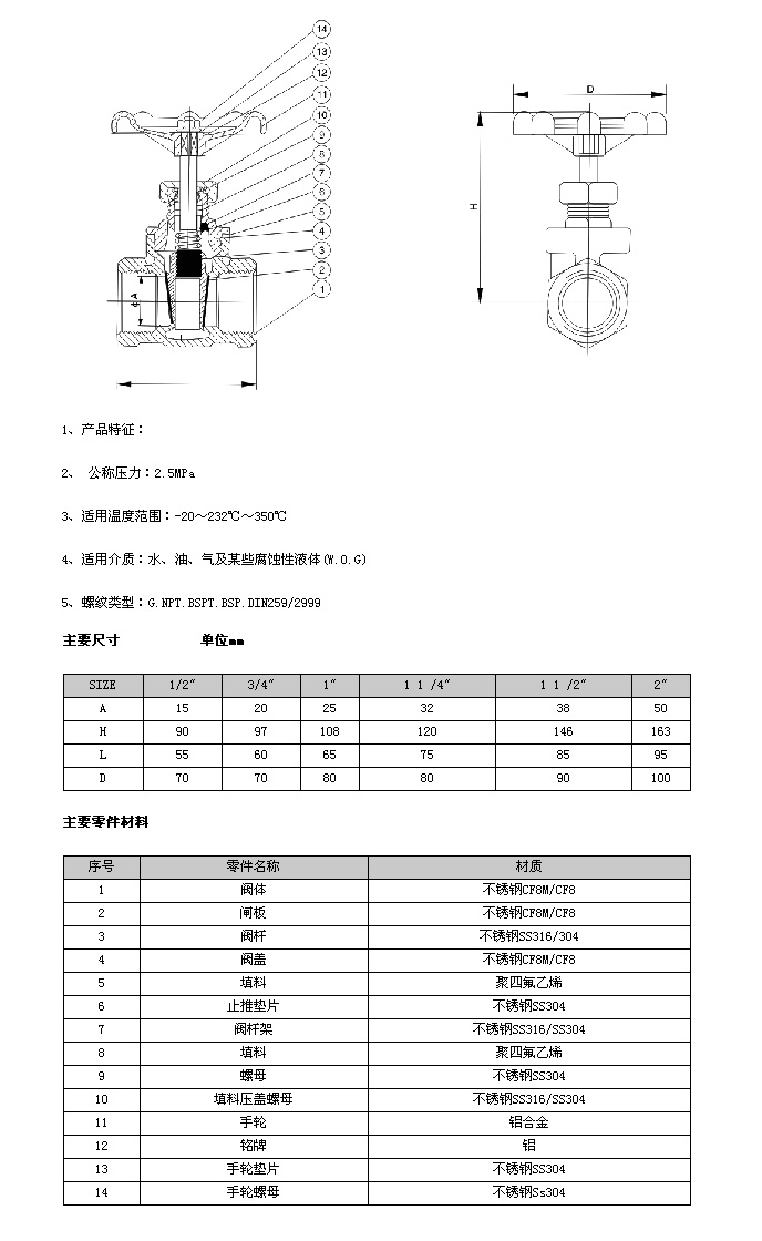 | 零件名稱 | 閥體、閥蓋 | 閘板、閥座、閥桿 | 填料 | 閥桿螺母 | 手輪 |